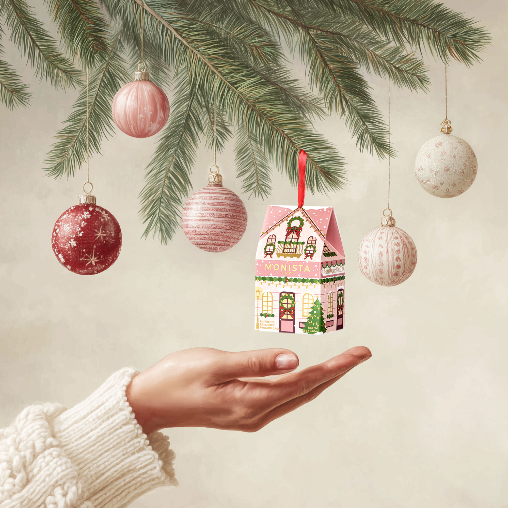 Celebrate the magic of Christmas with Monista’s limited edition Christmas Tea House. Each house includes 8 Monista French Earl Grey Loose Leaf Pyramid bags.