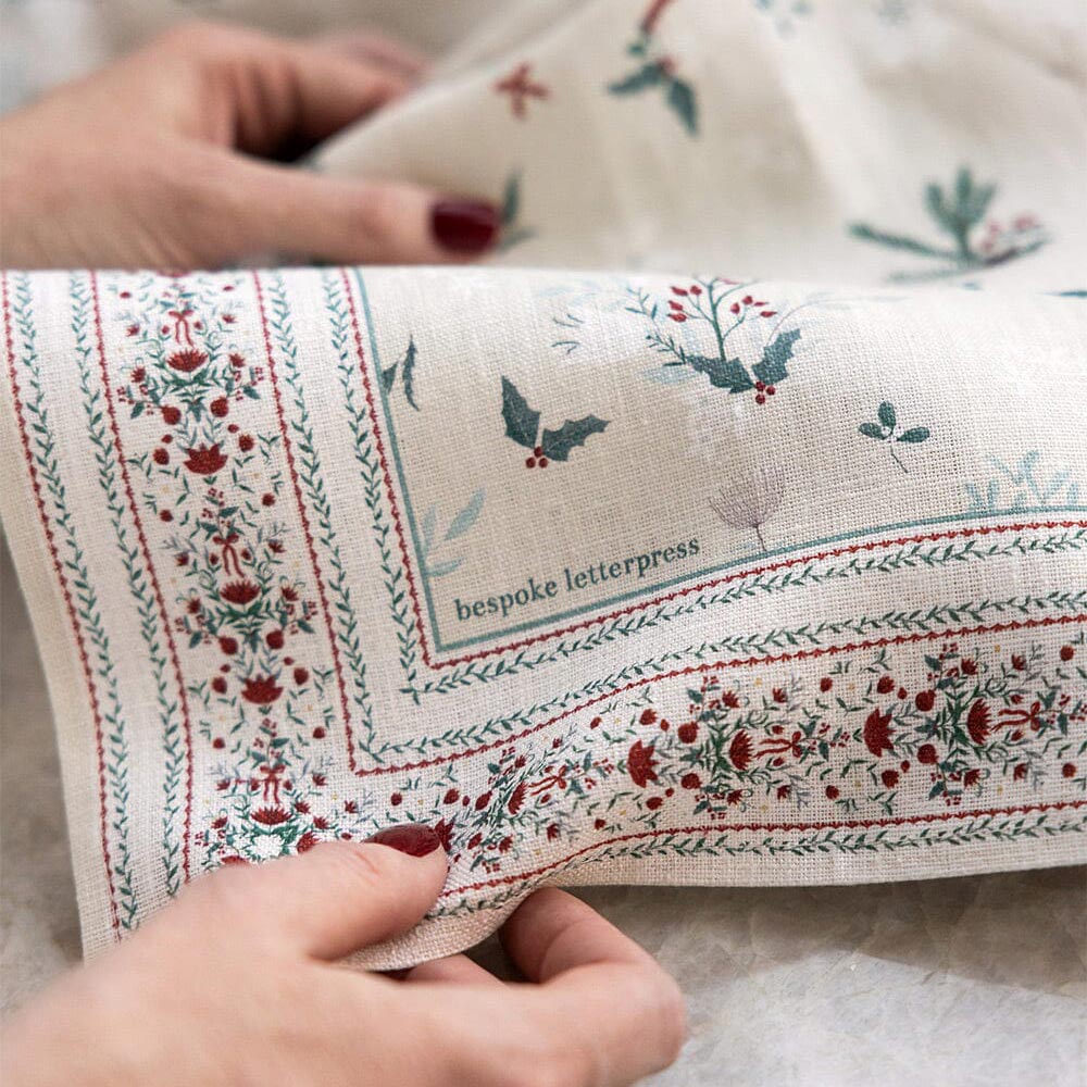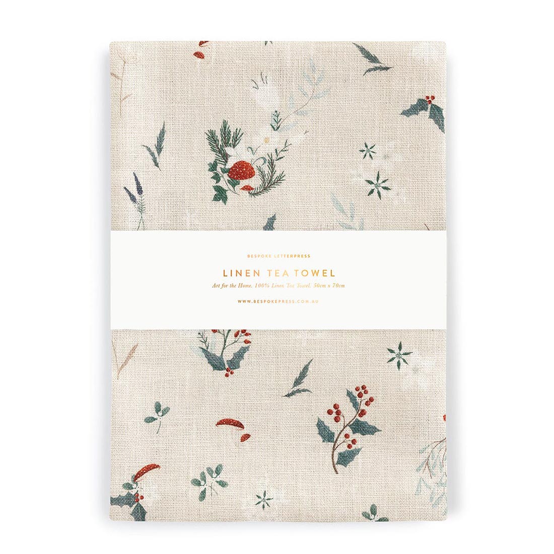 Heirloom Christmas Holly 100% Linen Tea Towel