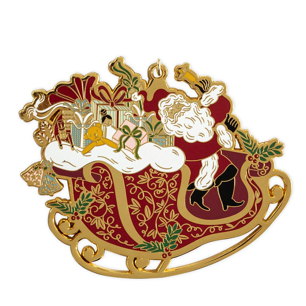 Santa Sleigh Ride Enamel Ornament